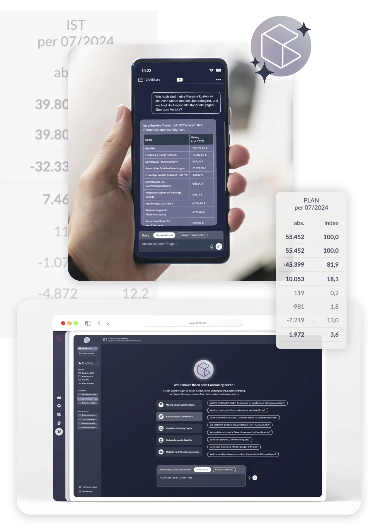 CANEI.pro buchen, Daten importieren und loslegen. Keine Installation, keine Schulungen, kein Handbuch. Der erste Nutzen kommt mit der ersten Frage.